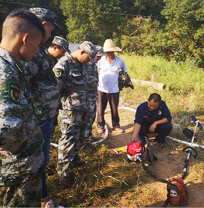 培训会议中,首先由荷塘区消防大队王教官进行讲解和演示,主要介绍了火场救火的方法及注意事项、救火器具的使用、人员安排的应急保障办法等,充实了街道防火队伍的理论知识。随后,应急队一行前往天台村小山村水库开展森林防火应急演练活动,演练开始后,队员使用新型割草机、铁扫把、便携式灭火枪等防火器具,模拟完成山火扑救整个流程。演习过程紧张有序,充分显示了应急队员的快速反应能力和实战技巧,达到了预期目的。