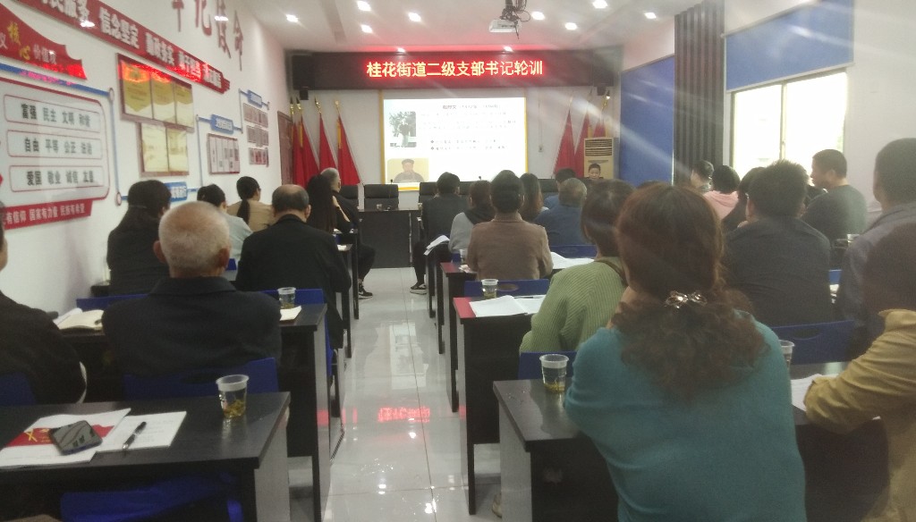 10月12日,桂花街道组织村(社区)二级支部书记开展了为期一天的轮训,村(社区)二级支部书记和街道机关党员共59人参加了培训。