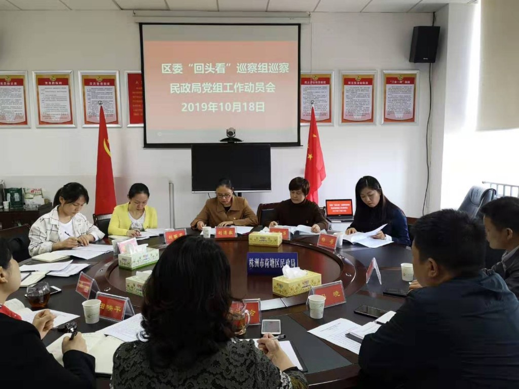 根据区委第九轮巡察工作安排,10月18日上午,区民政局召开区委第三巡察组对民政局党组巡察“回头看”工作动员会。巡察组全体成员、民政局全体班子成员参加会议,派驻纪检组组长王云贵列席会议。
