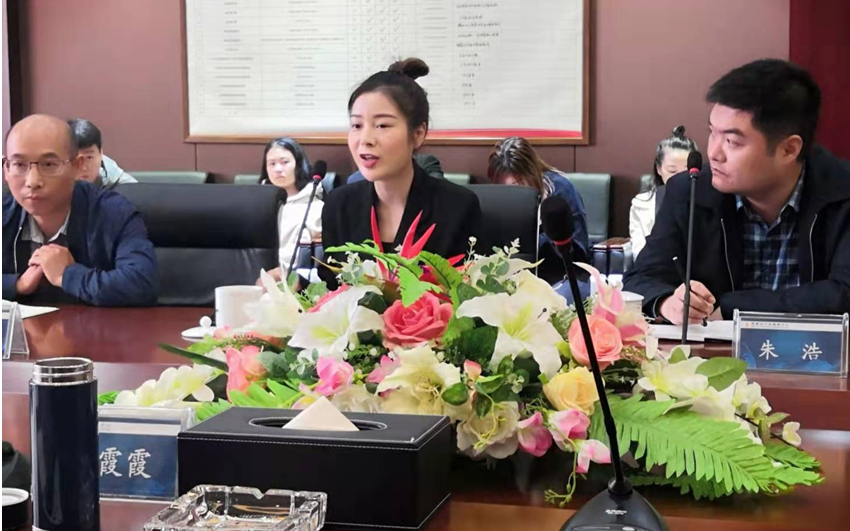 区产业服务中心主任陈霞霞简要介绍了我区企业服务工作的情况。其中,我区独具创新性的“一中心、九平台、多站点”服务体系和“业务专岗、服务专人”的服务模式让考察团印象深刻。