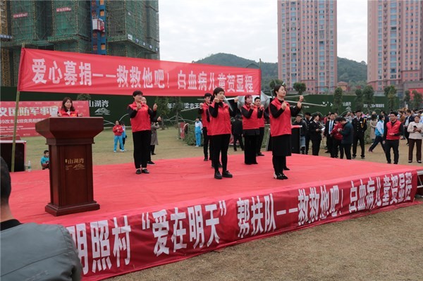 11月23日,在景业山湖湾前坪,明照村“爱在明天”志愿者们,为该村身患白血病的孩子程程(化名),开展了一次温馨的现场募捐活动。