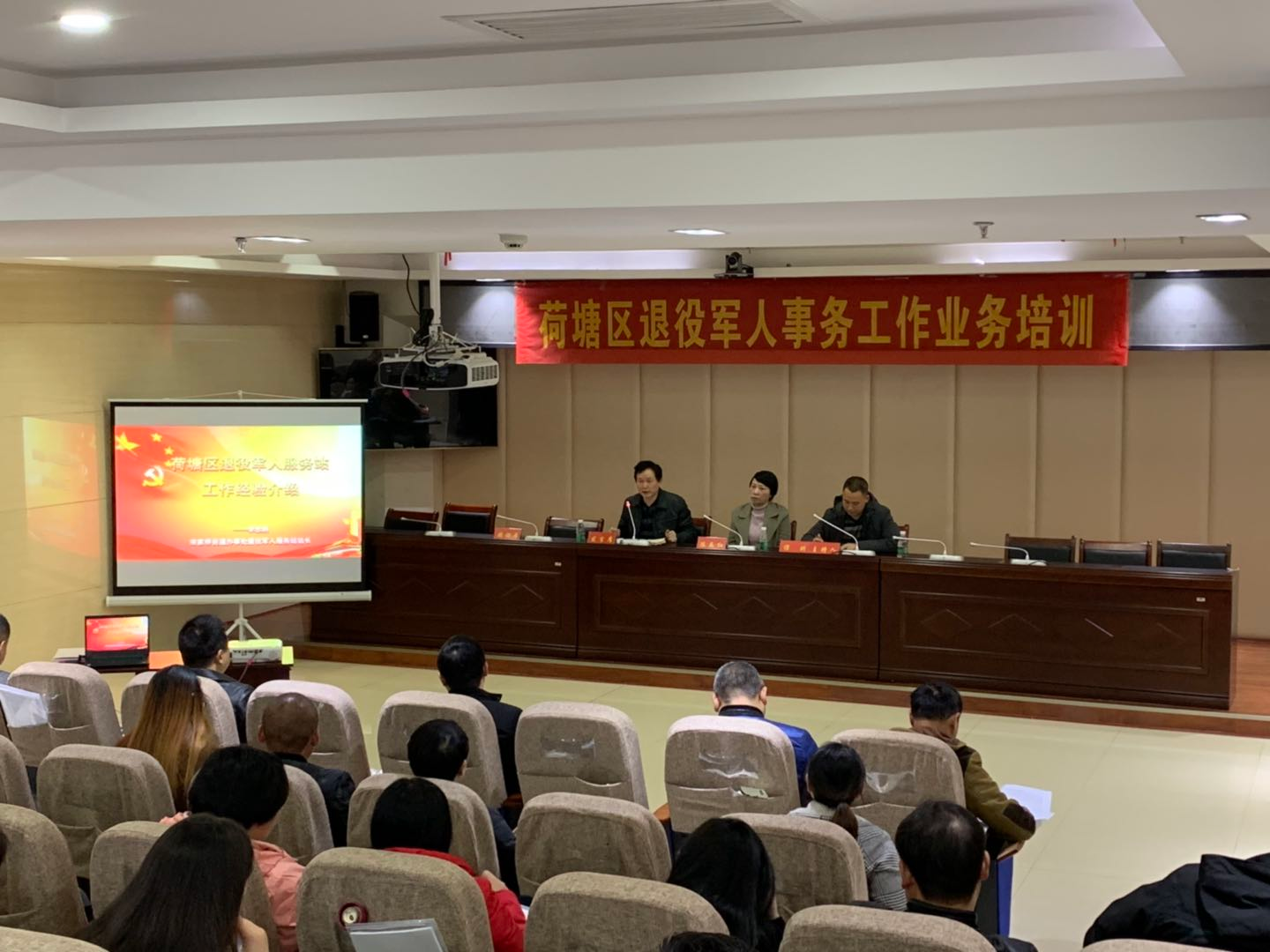 11月29日,为更好的提升全区退役军人服务系统工作人员的业务能力,荷塘区退役军人事务局组织开展退役军人事务工作业务培训,各街道(镇)武装部长、专干和各社区(村)专职人员参加培训。