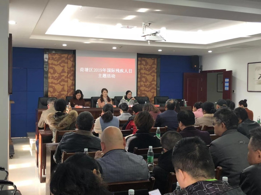 为庆祝第28个国际残疾人日,12月4日,荷塘区残联开展了2019年国际残疾人日主题活动。来自镇、各街道的残疾人工作者及残疾人代表共计80余人参加了活动,活动由区残联副理事长吴莉华主持。