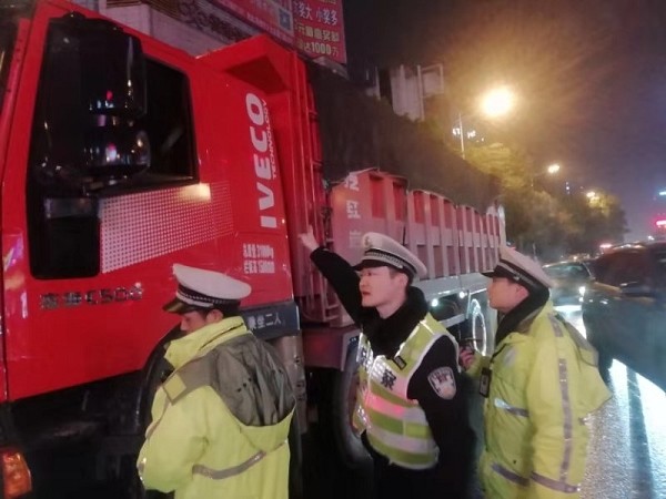 当晚行动时,大队带班领导带队参战的民警进行了动员,并分析研判了近段时间辖区实际情况,盯住“百吨王”大货车行驶规律,科学安排警力,在红旗广场设置临时卡点,把路面管控和电子监控有机相用,突出“流动+守点”的工作模式,开展常态整治“百吨王”大货车的交通违法,发现大货车涉嫌超限、超载、非法拼装、改装,报废车、注销车上路载货运营行驶等交通违法行为必将严查、严处,持续发力,形成高压严管态势,切实降低冬季交通事故风险隐患,形成整治严治的氛围,全力消除“百吨王”大货车交通安全隐患。