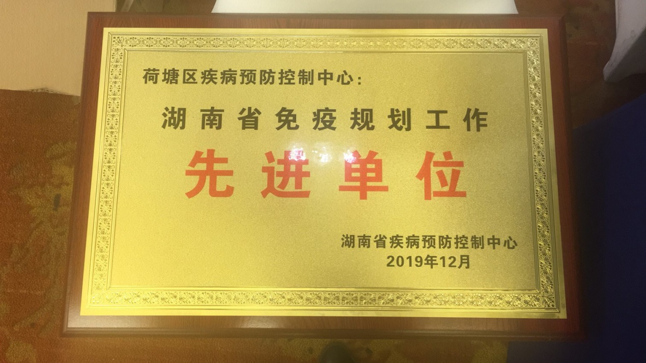 2019年度,荷塘区疾病预防控制中心凭借在业务工作中的突出表现和优异成绩,荣获了“湖南省免疫规划工作先进集体”称号,中心副主任资佐荣获“湖南省免疫规划工作先进个人”。