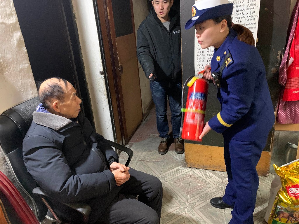 活动中,大队指战员每到一处都会对独居老人的生活居住情况进行了解,并询问老人们平时的用火、用电情况。同时现场查看火灾隐患,重点对家中的线路是否乱拉或老化、厨房是否堆放易燃易爆物品以及残余火种处理等进行排查,对存在的隐患及时帮忙整改。并向老人讲清了电器火灾的危害,以及如何预防电器火灾,火场当中如何安全逃生,如何防止有毒浓烟呛伤,并手把手的教老人如何使用灭火器,灭火毯,为老人家庭安装了独立式烟雾报警器,大队指战员再三叮嘱爷爷、奶奶,外出的时候一定要记得关闭电源开关并拔掉插头;千万不要躺在床上抽烟;若发现火灾不要怕不要慌,立即拨打119电话……