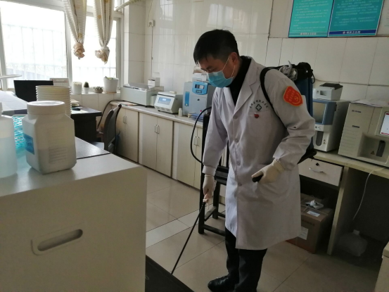 院党支部组织委员、副院长谢水兵接到分管通知,立即组织部署、人员分配,带头取消春节休假,坚守岗位,冲在防控斗争第一线。一天中随处可见他忙碌的身影,他带领着临床医生下乡入户追踪武汉返株人员,登记信息、发放告知书、对居民进行居家隔离指导;他背着喷雾器对全院每一个角落、救护车进行严密的消毒处理;他也会在沪昆高速株洲东出口进行排查值守;夜间仍然坚持接送在沪昆高速值守又出行不便的同志。