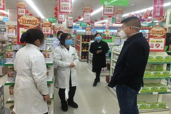区发改局唐坚在益丰大药房监测病毒疫情防控物资情况
