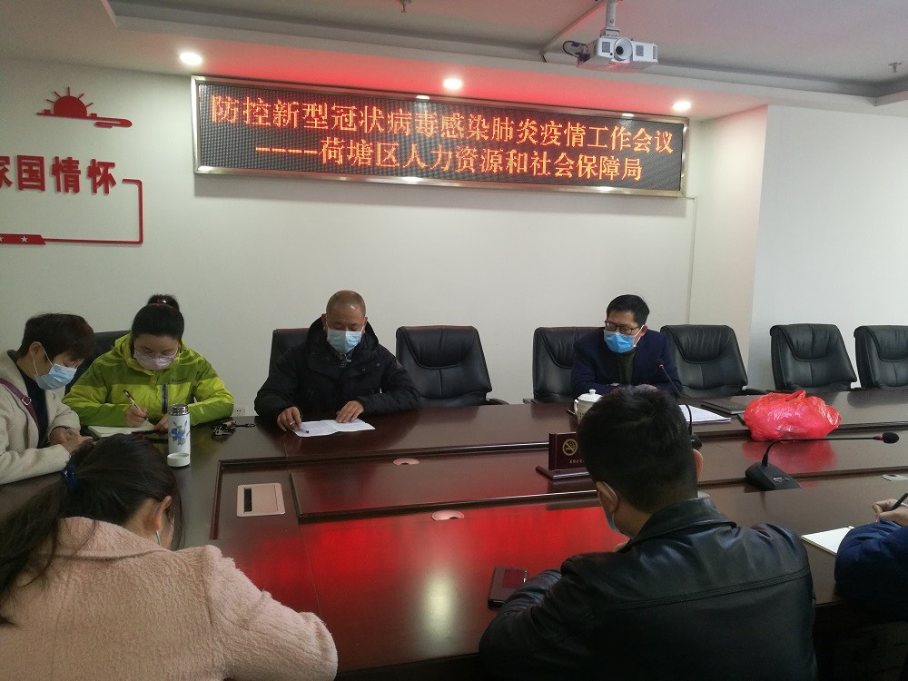 1月31日上午,区人社局党组书记周湘雄主持召开防控新型冠状病毒感染肺炎疫情工作会议。党组成员及局二级机构负责人参加。
