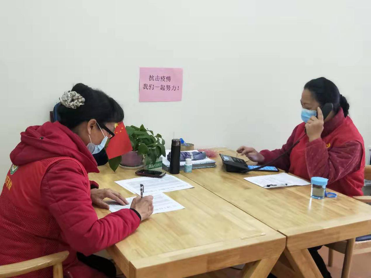 志愿者张丽霞、周萍辉正在拨打居民电话