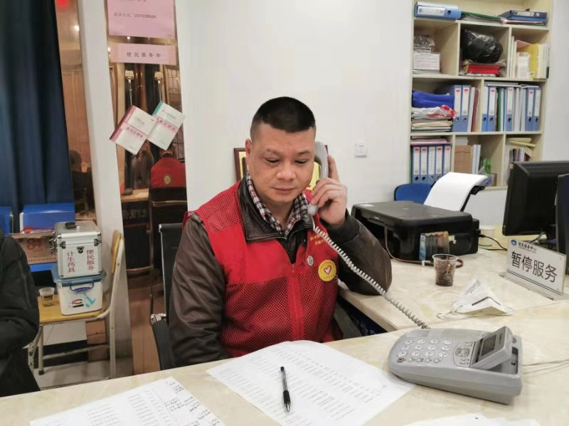 志愿者沈勋在拨打居民电话