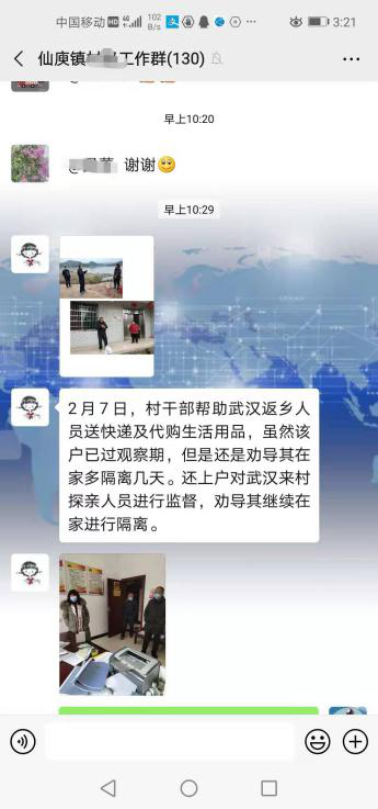 截至目前,仙庾镇通过微信群累计发出防疫宣传870余条,为居家隔离人员提供上门服务870余次,心理疏导30余次。微信群在关键时期为助战役胜利贡献了重要力量。