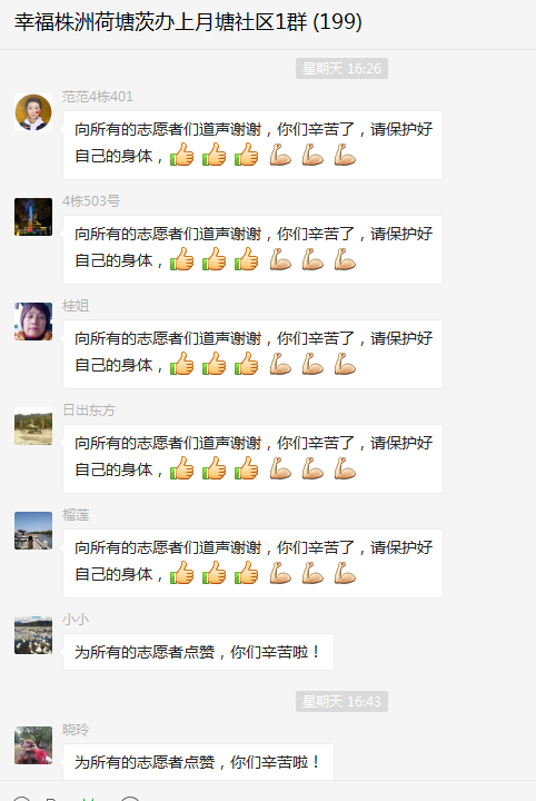 一句问候,慰藉心灵。“你们辛苦了”、“你为我护家,我为你祝福”、“外出防疫,请一定保护好自己”......近日,在茨菇塘77个居民微信群里,类似问候在居民微信群频频出现。原来,志愿者们在一线的工作图片,总会被热心居民“偷拍”,主动推送到居民微信群,并引起居民热议。志愿者们站岗、巡逻、劝导等善举,得到了群众们的一致点赞。“辛苦了”、“保护好自己”是他们对志愿者发自内心的问候和嘱咐。