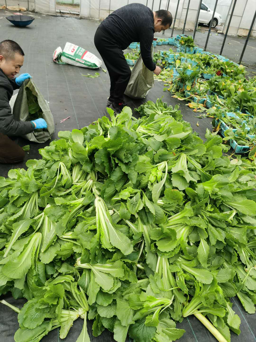 罗姐和员工们采摘、清理500多斤蔬菜
