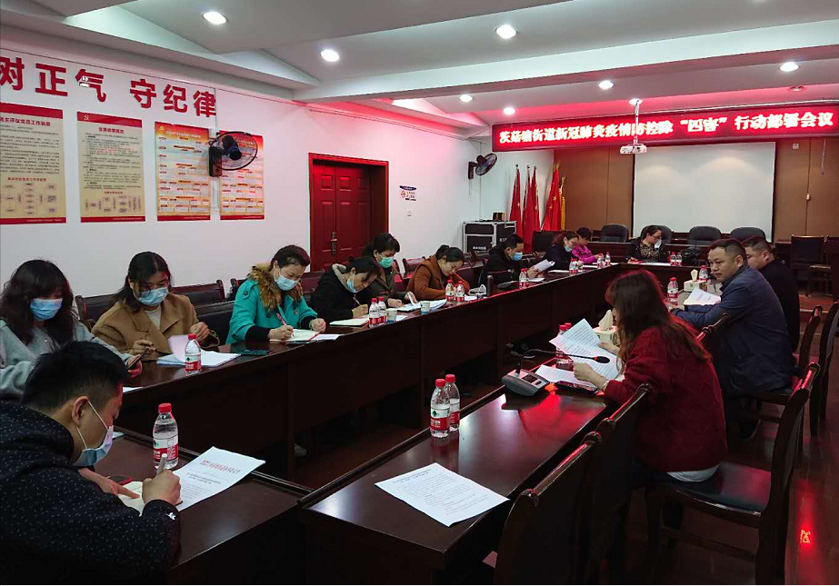 3月27日,茨菇塘街道召开新冠肺炎疫情防控“除四害”行动工作会议,街道党工委委员、政协联络工作负责人谭爱平主持会议,卫计办、城管办及各社区主任参加会议。