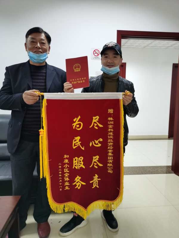 野鸭冲棚改安置房项目是株洲市2011年棚改区改造项目, 2012年完成建设安置房2栋,建筑面积16749.83平方米。因存在若干历史遗留问题,导致不动产权证迟迟未办理,业主多次上访表达诉求。金科集团接受此任务以来高度重视,积极对接市民中心、税务,咨询相关职能单位,通过多种途径、多种渠道的努力,最终解决了长期困扰业主的大问题,赢得了该小区业主的高度认可。