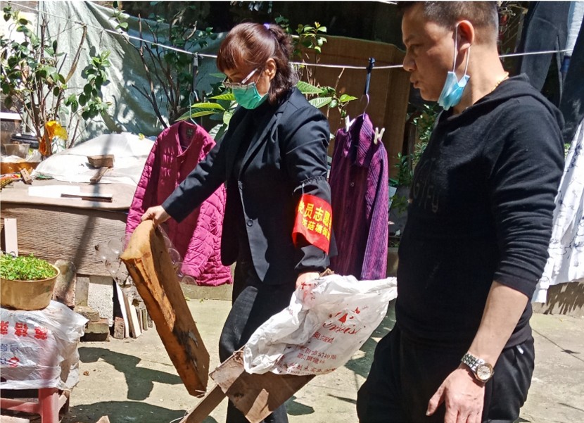 整治中,工作人员、志愿者对辖区小区的楼道、街道进行了一次大范围检查,以小区内及周边环境卫生为主,治理乱搭乱建、三堆五乱现象,清除绿地、花坛等杂物,全面消除楼道、外墙乱贴乱画、小广告等,遏制劝导居民乱丢乱吐、乱倾乱倒、毁绿种菜、私拉乱接等不文明行为。同时街道城管队联合区城管部门重点针对店外出摊、货物堆放、占道经营等乱象问题立即予以清理劝离,并督促引导沿街商户做好“门前三包”工作,共同维护创文成果。