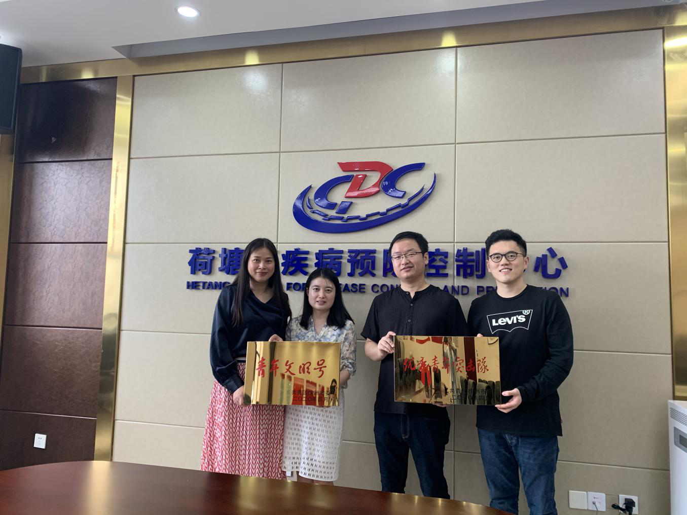 5月7号上午,共青团株洲市委授予株洲市荷塘区疾控中心2019年度株洲市“青年文明号”、“优秀青年突击队”荣誉称号。授牌仪式在荷塘区疾控中心举行,团区委书记张敏、团区委副书记刘青松、区疾控中心相关领导及青年代表参加授牌仪式。