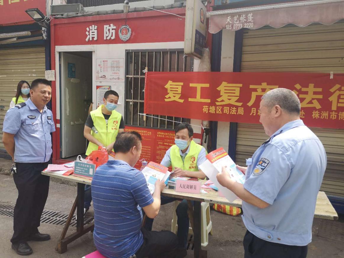 月塘地区服装加工厂较多,流动人口量大、人员密集、社会矛盾较多。为营造良好的法治氛围,有序推进企业复工复产,5月13日,荷塘区司法局联合株洲市博弘社会工作服务中心组建了一支法律服务小组,在月塘街道富家陇产业服饰园开展复工复产专题法治宣传、法律咨询及法治体检活动。