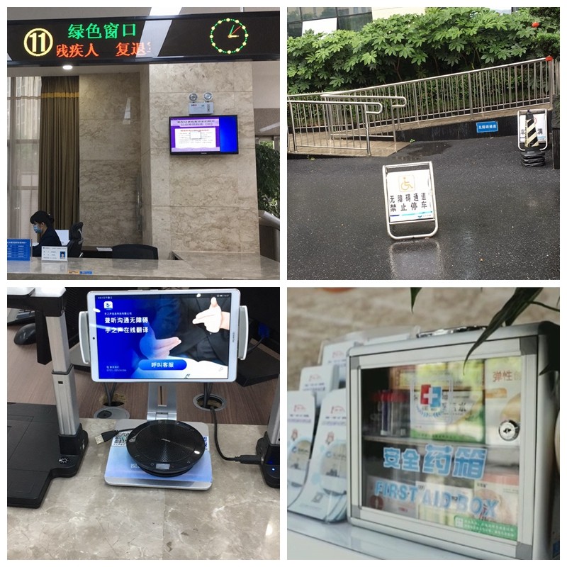 据悉,为保障残疾人、老年人、孕妇儿童等特定群众到中心办事通行安全和使用便利,区政务服务中心在大门台阶一侧修建了一条坡道,方便残疾群众从大门进入大厅办事。同时,大厅志愿者服务驿站设有应急医药箱、便民雨伞及轮椅,每个窗口还为办事群众配备了专用老花镜和放大镜,方便群众根据需要选择相应的服务。