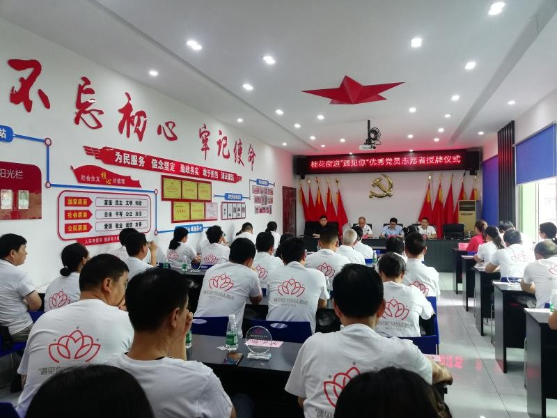 为激励引导街道广大党员、群众更好地在危难时刻挺身而出、担当作为, 5月26日下午,桂花街道在四楼会议室组织开展 “遇见你” 新冠肺炎抗“疫”优秀党员志愿者授牌仪式。区委党校校长丁圣民到会指导,街道党工委书记蔡世华、组织委员谭震宇、各村(社区)党建专干和32名优秀党员志愿者代表参加授牌仪式。