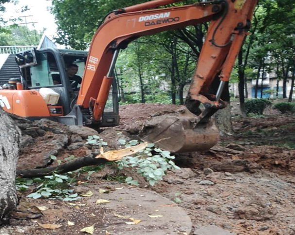 近日,在开工建设的袁家湾小游园提质改造项目现场,施工人员正在进行地形整理、管线施工等工作。在建设中施工单位将以工程质量为第一原则,确保建成后工程质量及景观效果。