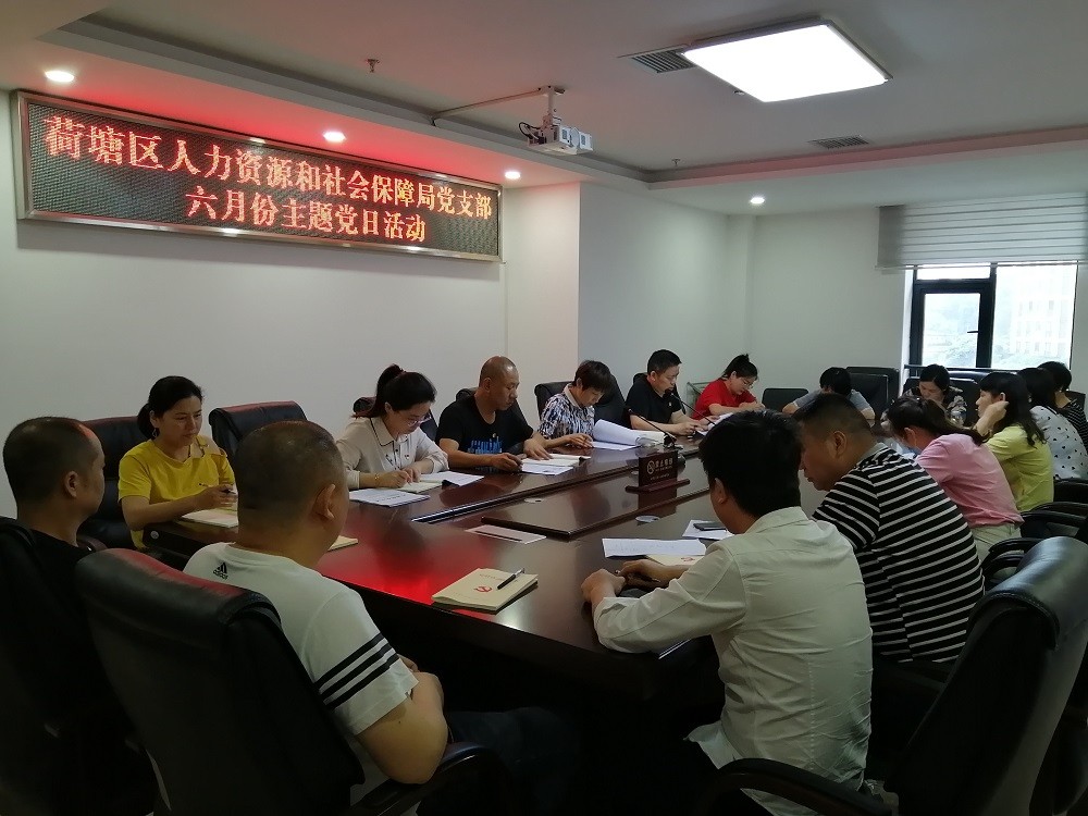 6月5日下午,中共株洲市荷塘区人力资源和社会保障局支部召开6月支部主题党日活动。会议由支部组织委员、副局长宾海燕主持。