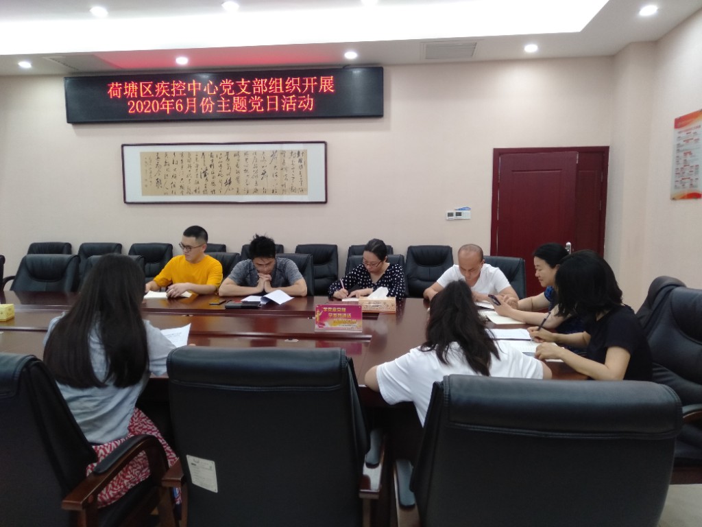 6月5日上午,荷塘区疾控中心党支部组织本支部全体党员在中心党员活动室围绕“党旗飘扬,幸福荷塘”,开展6月份主题党日活动。