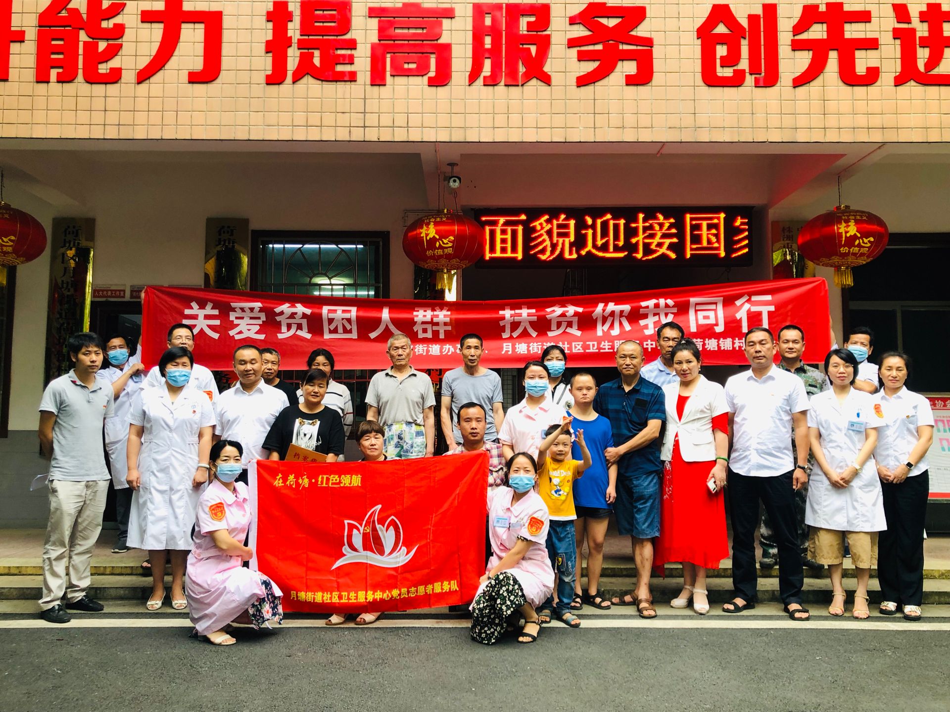 6月23日下午,月塘街道社区卫生服务中心党员志愿者及入党积极分子,利用休息时间来到荷塘铺村村部,开展“关爱贫困人群,扶贫你我同行”志愿活动,为精准扶贫对象送医送健康。