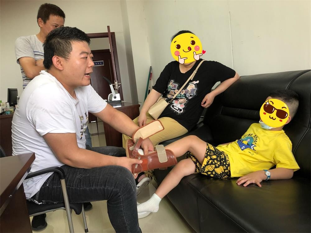 “妈妈,你瞧瞧我穿上这个鞋子是不是显得特帅气,有点像穿军靴的感觉”,周周(乳名)小朋友兴奋地向妈妈炫耀着,不停的在办公室里来回走动。周周小朋友今年6岁,出生时因为早产导致出现脑瘫,有严重肌张力过高、漆关节屈曲、拇指内扣等问题,无法正常行走,常年需通过矫正鞋来矫正行走。矫正鞋,对由脑性瘫痪引发的运动障碍不仅能起到平衡身体、矫正畸形、改善和恢复行走功能的作用,还能有效帮助残疾儿童进行康复训练。