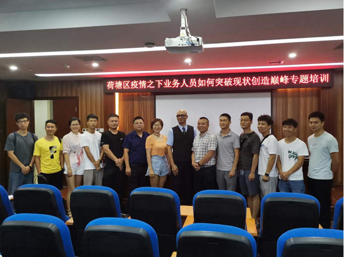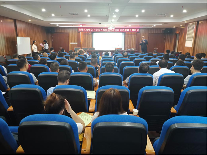7月17日,由荷塘区产业服务中心主办、健峰企管集团承办的“疫情下业务人员如何突破现状创造巅峰”专题培训在荷塘区金山新城六楼会议室顺利开展。此次培训邀请了健峰资深营销顾问师洪铭远,为区内90多位销售精英进行现场授课。