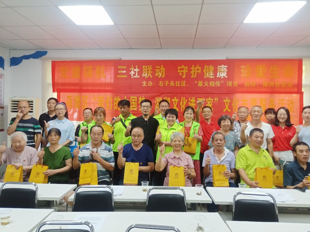 8月8日是我国第12个“全民健身日”,为落实全民健身国家战略,倡导文明健康生活方式。8月14日,月塘街道星火相传项目联合石子头社区党委、爱心企业株洲市合医馆,以“党建领航、三社联动,守护健康、珍爱生命”为主题,举行了中医养生健康讲座活动。
