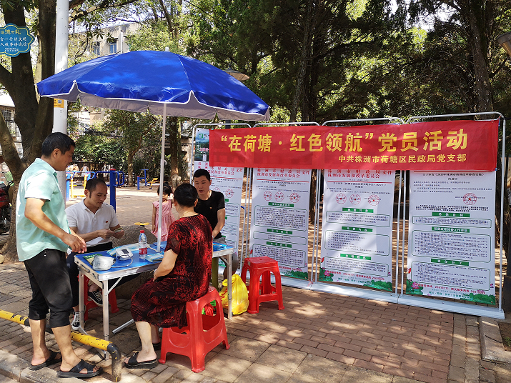 为进一步推动机关党建和五化民政建设深度融合、相互促进,8月26日,区民政局组织支部党员深入月塘街道袁家湾社区开展“在荷塘·红色领航”党员活动,对殡葬改革、社会救助、儿童福利、养老服务等民政政务服务及民政法规政策进行集中宣传。
