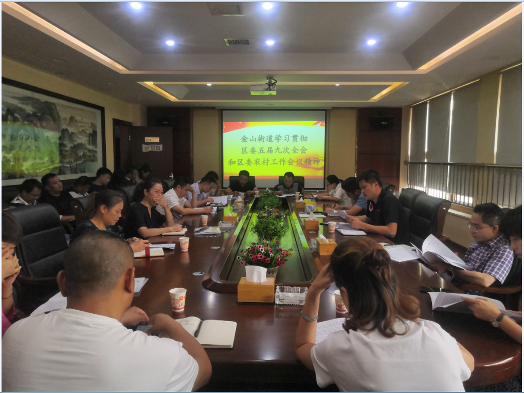 8月28日下午,金山街道组织召开党政联席扩大会议,第一时间传达学习贯彻区委五届九次全会和区委农村工作会议精神,统筹部署安排近期一系列重点工作。街道全体党政班子成员、各村社区书记、各站办所负责人参与会议。
