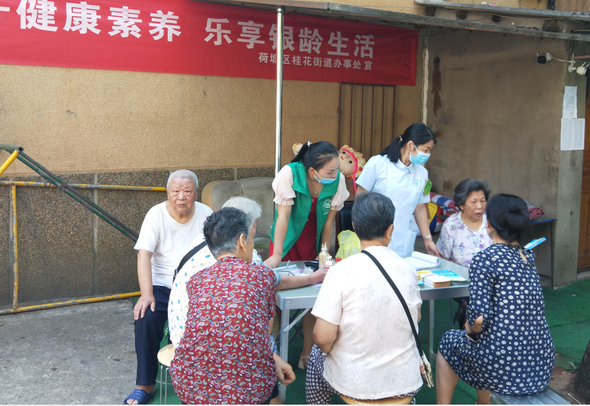 活动以悬挂横幅、设立咨询台、发放宣传资料、引导老人们下载“人民健康”APP,观看老年健康教育科普视频等多种形式进行宣传。活动现场,街道的工作人员们一边发放宣传资料,一边教老人们如何使用手机观看健康视频,桂花社区卫生服务中心的家庭医生们现场为老人们测量血压,完善老人的健康档案,同时对老人们提出的疾病预防、慢性病的安全用药等相关知识进行了解答。倡议老年朋友积极行动起来,掌握健康知识,提升健康素养,定期监测身体健康指标,积极参加有益身心健康的社会活动,做管理自身健康的主人,做老有所为、健康快乐的老人。