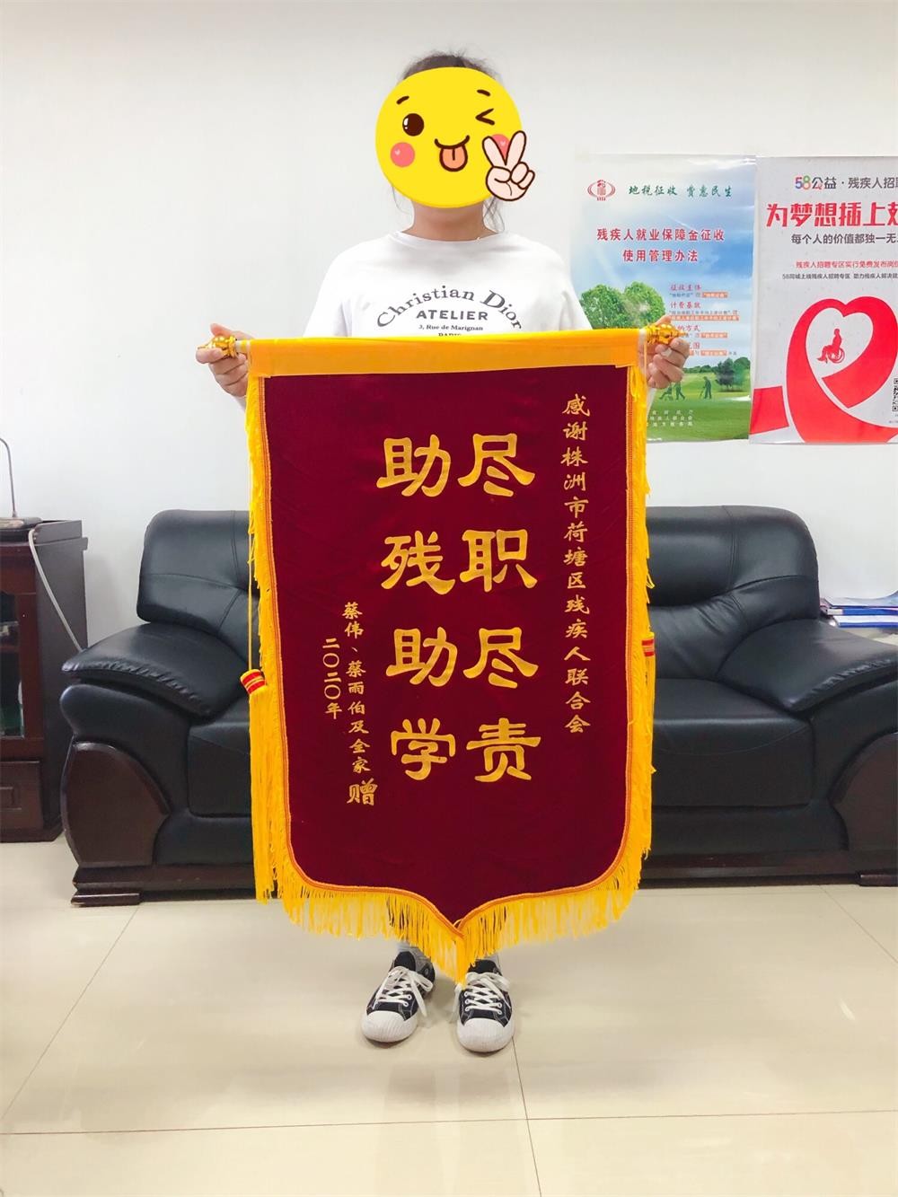 图为:残疾人蔡某为荷塘区残联赠送的锦旗