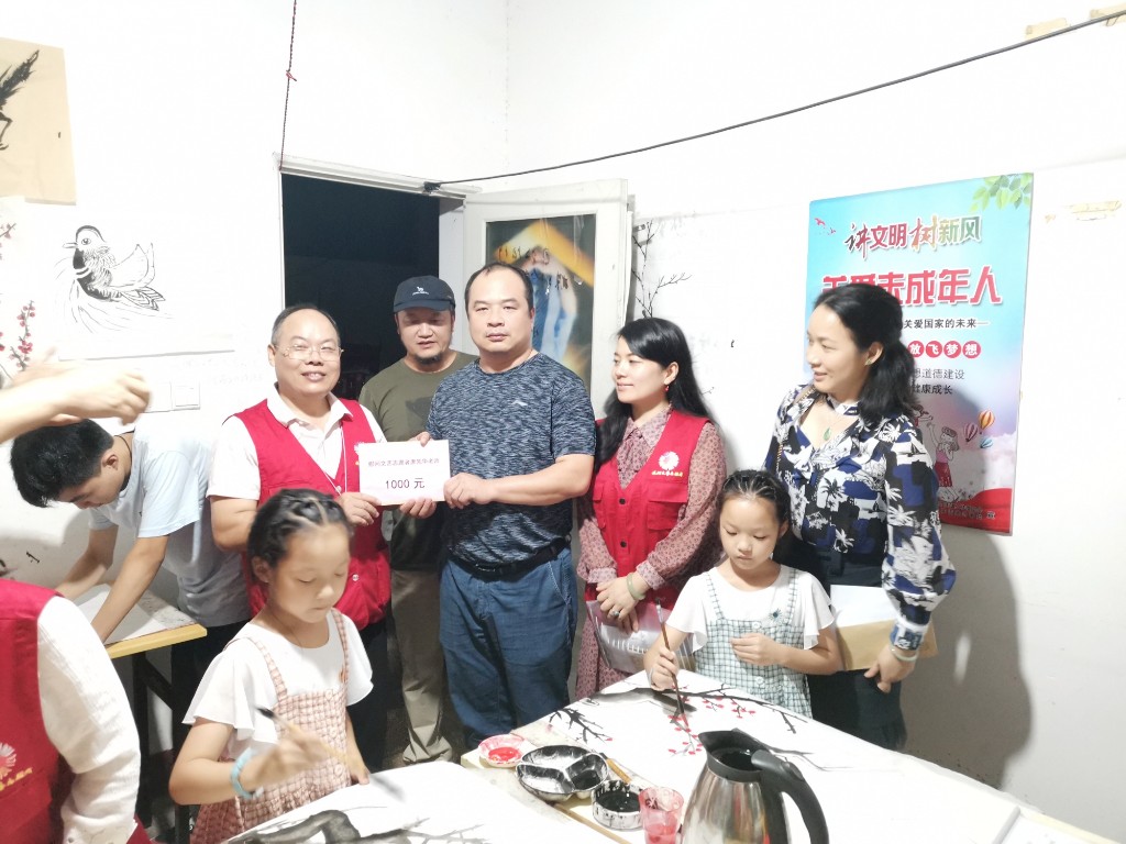 9月16日,株洲市文联副主席娄雷,党组成员、副主席马学华带领市文艺志愿者协会、荷塘区文联主席蔡灵敏、荷塘区美协主席颜洪一行8人来到荷塘文艺志愿者唐先华创办的留守儿童美术公益课堂现场开展走访慰问。为“唐先华美术公益课堂”送去慰问金,向在这里学习书画的留守孩子们送去书画练习纸、蜡笔、学习手提袋、笔墨等学习用品。娄雷一行对唐先华老师多年来开展的文艺志愿服务给予了高度肯定,并鼓励他继续开展文艺志愿服务,以实际行动书写新时代的雷锋故事,为株洲建设更高水平文明城市贡献力量。