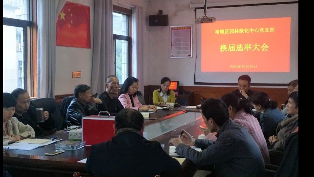 10月16日下午,株洲市荷塘区园林绿化中心在中心四楼会议室召开了党支部换届选举党员大会,会议由上届党支部书记易旭主持,城管局党委成员、副局长傅平辉到会指导,中心全体党员参加了会议。
