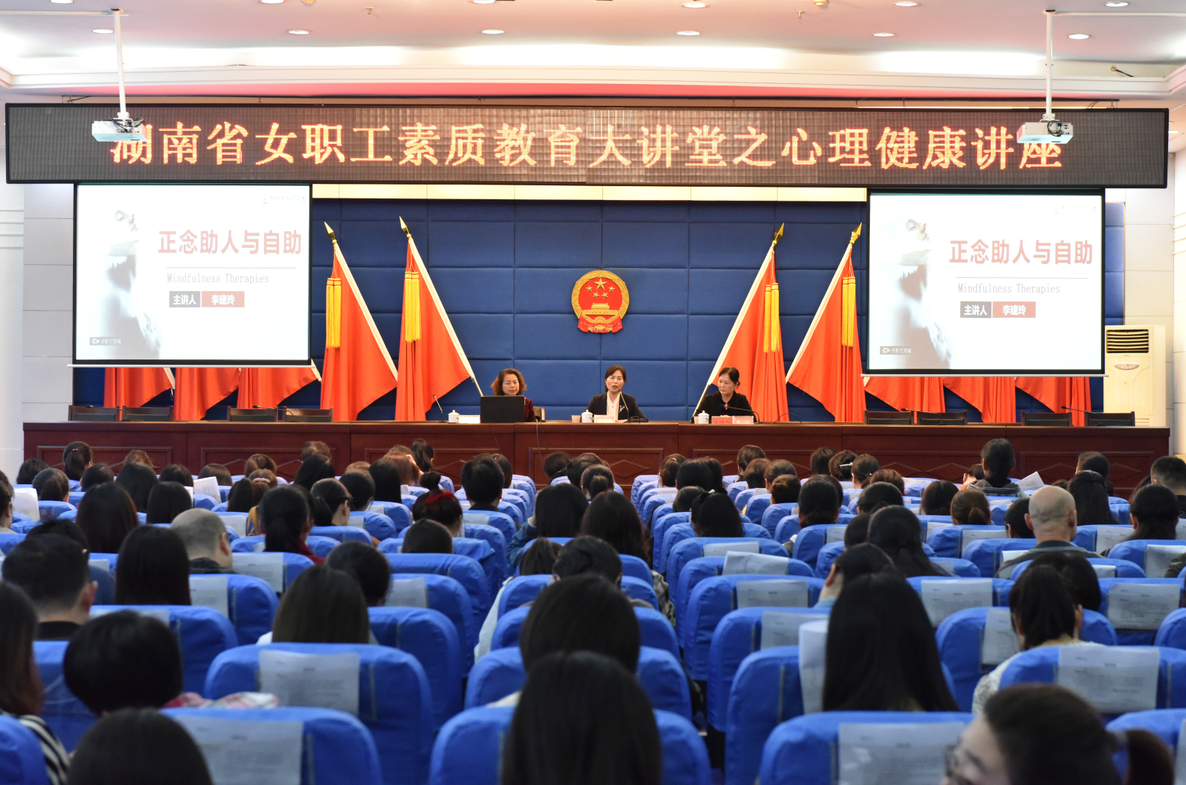 10月27日,湖南省女职工素质教育大讲堂之心理健康讲座在荷塘区举办。仙庾镇、各街道、金山科技工业园工会联合会,各行业、系统、部分企业工会400余名工会会员参与此次讲座。