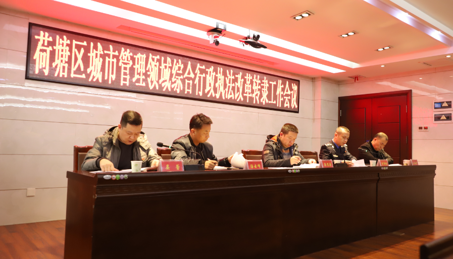 为进一步实现“精简、统一、高效”的城市管理机制。11月24日,荷塘区召开城市管理领域综合行政执法改革转隶工作会。会议决定,不再保留区城市管理行政执法大队和区治理违法建设综合管理大队,整合城管大队与治违大队的工作职责,组建荷塘区城市管理综合行政执法大队。会议由区城管局副局长兼执法大队大队长李伟斌主持,区城管局局长汤思源、副局长晏蕾、区纪委监委驻城管系统纪检组长汤云峰、原治违大队大队长王海亮以及原城管大队、治违大队副中队长以上干部参加会议。