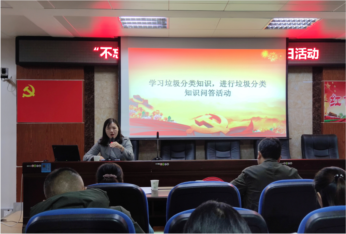 会议还组织了垃圾分类知识学习及问答活动,通报党员积分并集中缴纳党费。