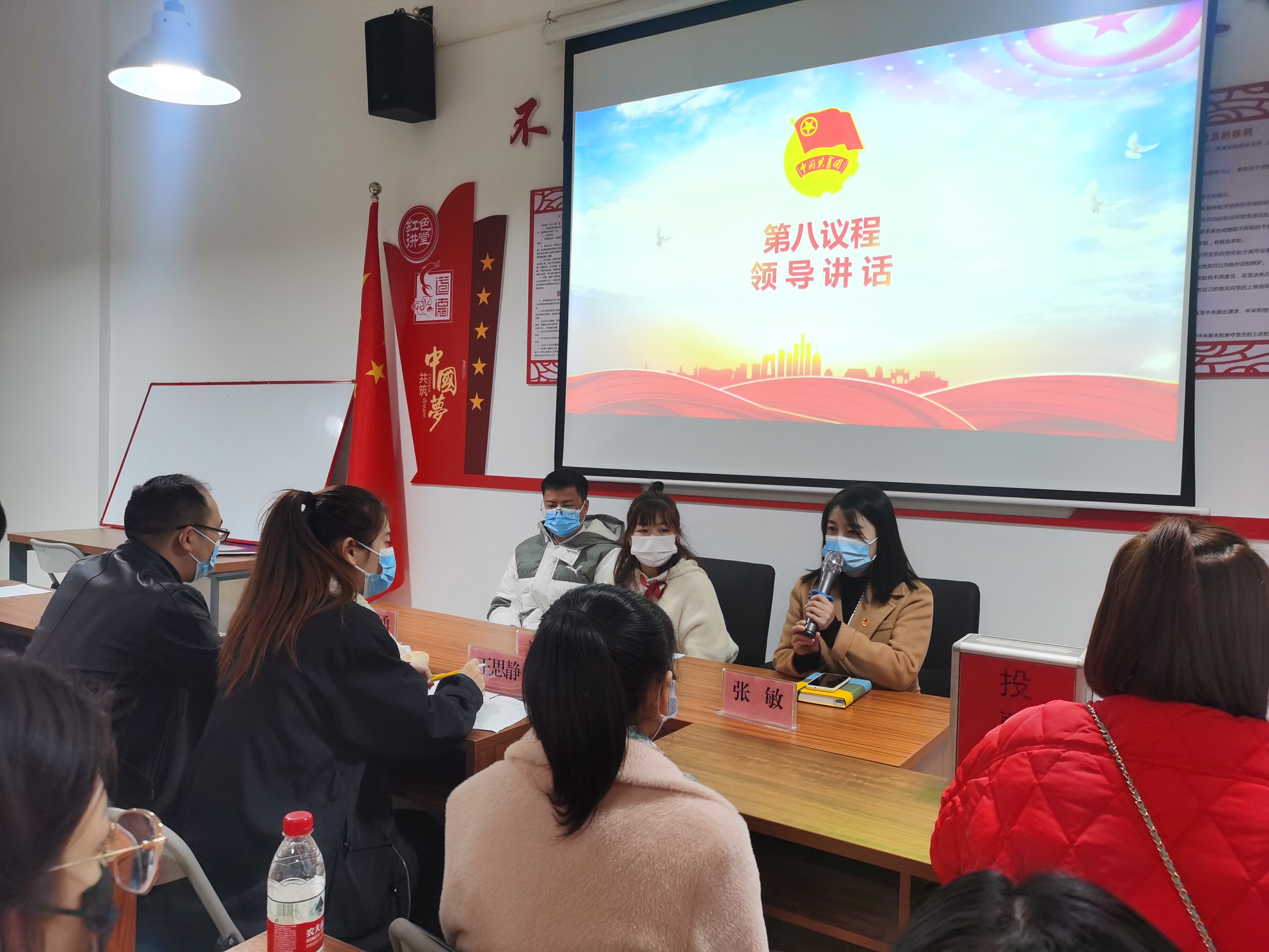 1月14日上午,团区委书记张敏、团区委副书记王思静一行前往荷塘星城五星党支部会议室参加共青团红旗村社区支部委员会团员大会,指导监督社区团组织换届选举工作。
