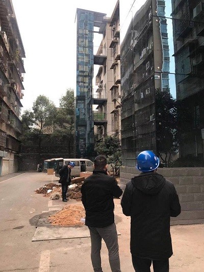 检查组在 廖家冲小区既有住宅加装电梯现场