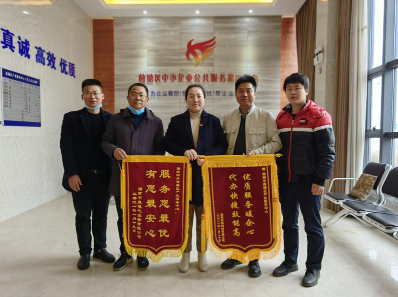 “服务您最优,有您最安心”,“优质服务暖企心,代办快捷效能高”。1月22日,湖南中良电气设备有限公司和湖南东裕科技有限公司的两位负责人为荷塘区产业服务中心送上锦旗,对中心优质、高效、贴心的服务表示感谢。
