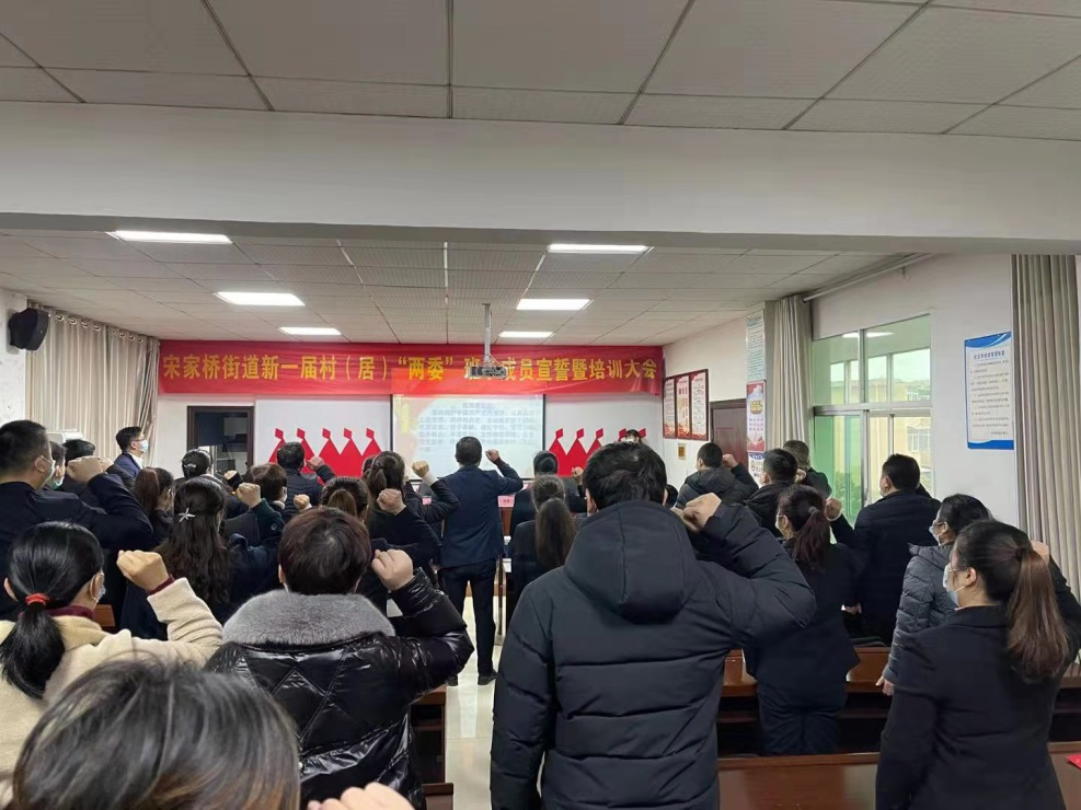 1月25日上午,宋家桥街道召开新一届村(居)“两委”班子成员宣誓暨培训大会。街道班子全体成员,村(居)“两委”班子成员,党政办、党建站、民政办全体工作人员参会。