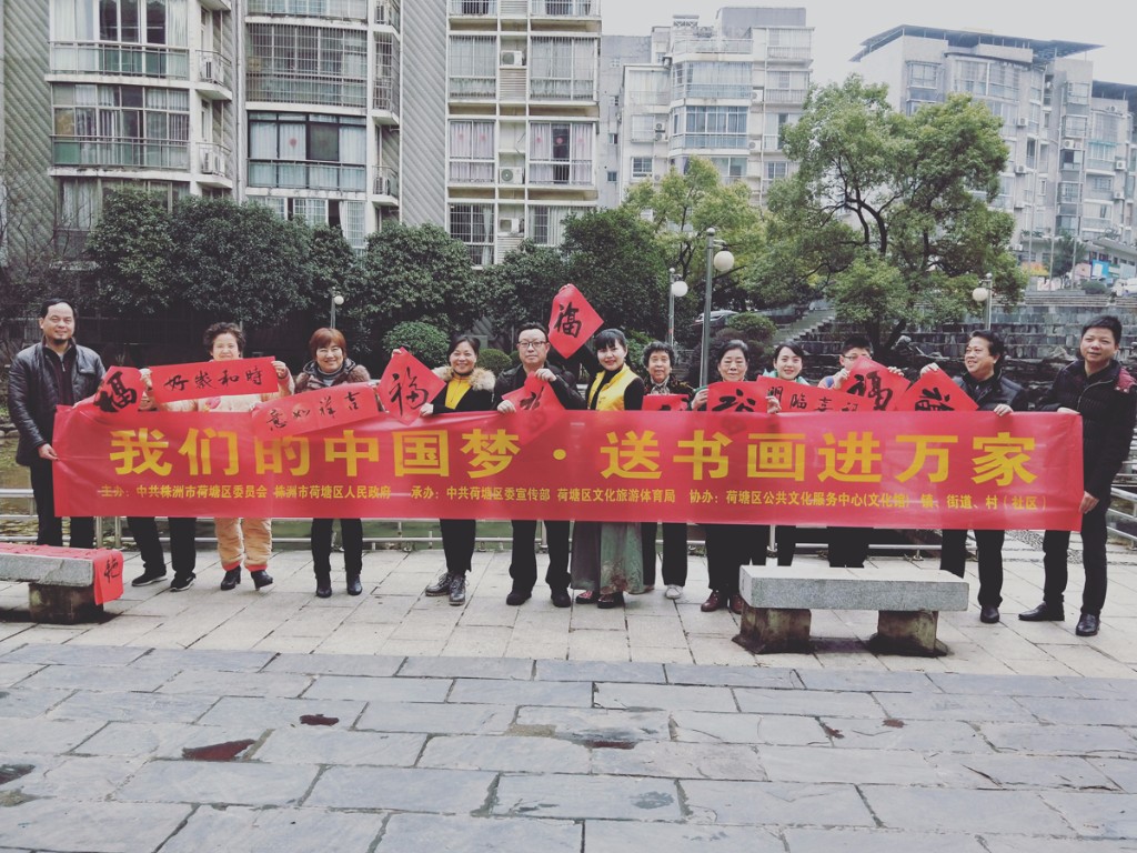 福赠春联祈平安,名家挥毫迎新春。2月1日至2月3日,荷塘区文旅体局副局长贺春庆带领钟建文、丁珂、陈勇等六位书法家分别来到仙庾镇、宋家桥街道、桂花街道、月塘街道、明照街道、茨菇塘街道开展“我们的中国梦•送书画进万家”活动。“迎新年,贴春联”是中华民族一直延续的老传统,是象征吉祥、表达人们向往美好生活的民族风俗。