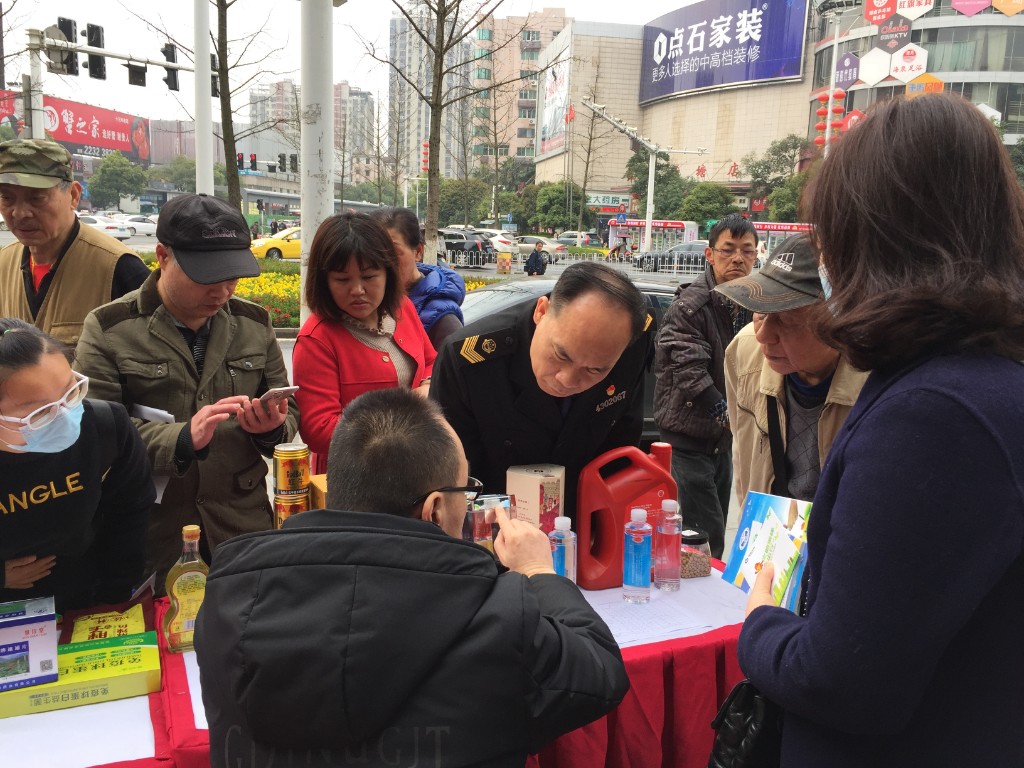 在红旗广场步步高超市门前,参与单位通过现场示假、答疑解惑、发放宣传资料、展示宣传展板等方式宣传消费维权知识。示假台摆放着生活中常见的消费产品,引得路过群众驻足围观;咨询台现场工作人员积极解答消费者的“烦心事”;现场发放的宣传资料涵盖了群众生活方方面面,图文并茂、通俗易懂。