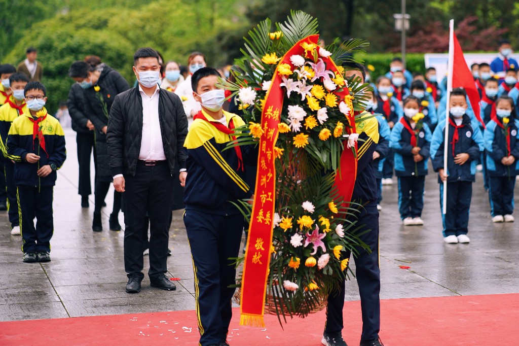 共青团株洲市委副书记、株洲市少工委常务副主任陈亮在讲话中指出,“作为建设社会主义和共产主义的预备队,广大少先队员要坚定理想信念,树立远大理想,要珍惜美好年华,沿着革命英烈的足迹,向着实现“两个一百年”奋斗目标和中华民族伟大复兴中国梦奋勇前进”。