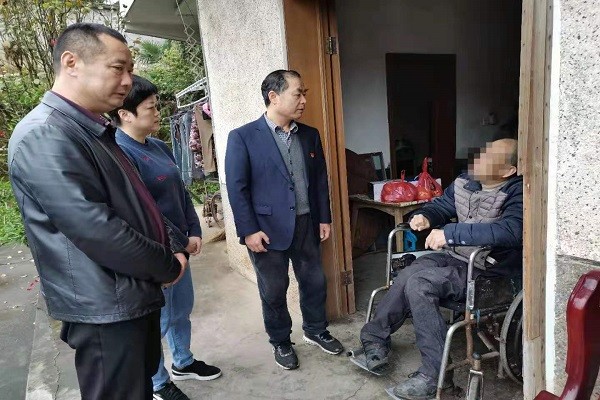 丁国祥和统计局在职党员来到慰问对象周少明家中,与其亲切交谈,了解他的生活状况、子女工作情况,并将慰问物品送至其手中。由于周少明行动不便,家中卫生状况不佳,随后众人拿着工具将周少明家进行了清扫。