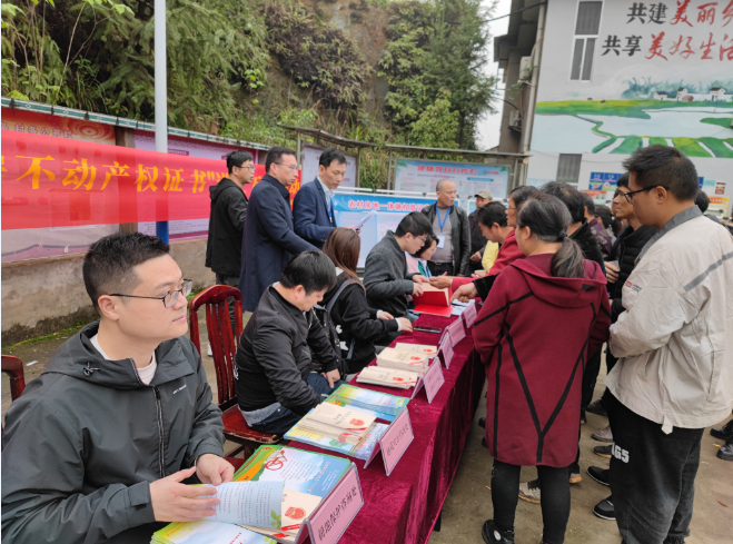 在活动现场,新市村14个组共计177户村民高兴地领到了属于自己的不动产权证书,村书记袁立波说:“送证下乡活动是实实在在地为人民服务,让老百姓得实惠的好事”。区自然资源局还通过摆放宣传展板、悬挂宣传横幅、发放宣传资料等方式,向老百姓宣传自然资源法规政策。活动现场设立了耕地保护、确权登记、执法监察、地灾防治、森林防火、法律法规等6个咨询点,工作人员就老百姓感兴趣的问题一一予以答疑解惑。据统计,现场发放宣传资料500余份,接受法律法规咨询60余人次。